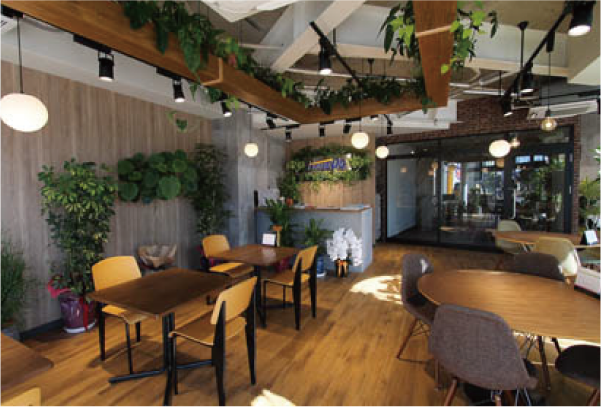 グリーンにより雰囲気が明るくなったことで、お客様の目を楽しませる